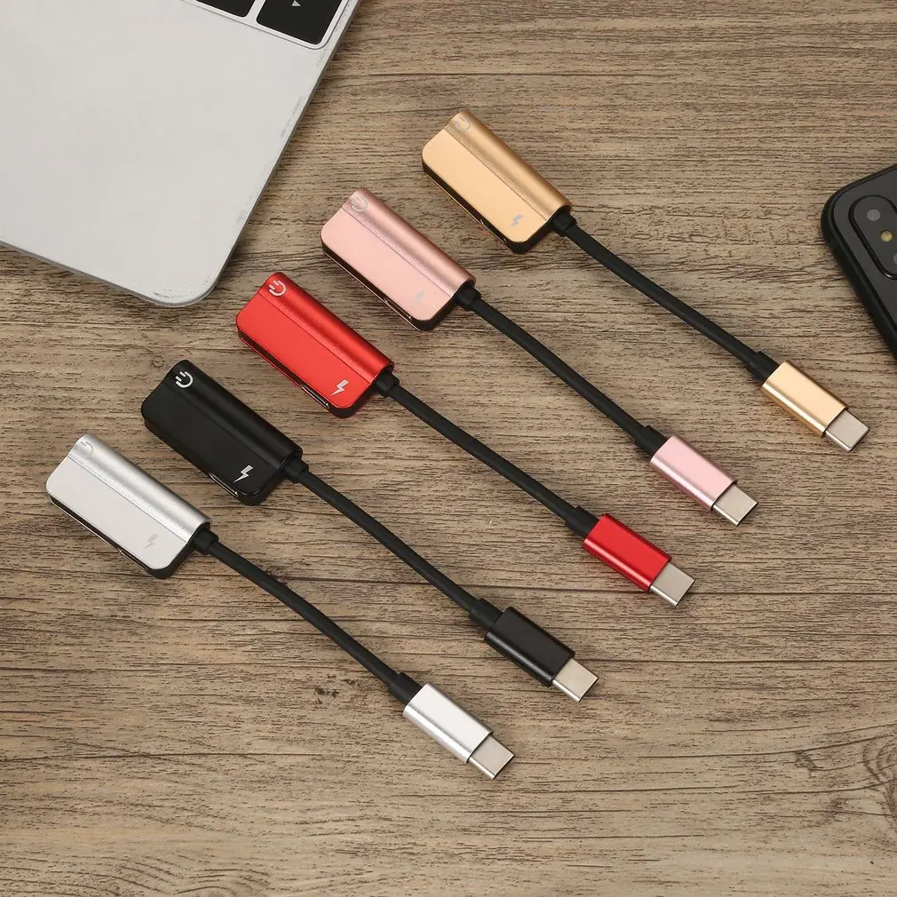 Sale Portable Mini 2 In 1 Type-C Audio Transfer Cable with 3.5MM Audio Adapter Jack Universal for Smart Hot Product as cheap as US $1.38
